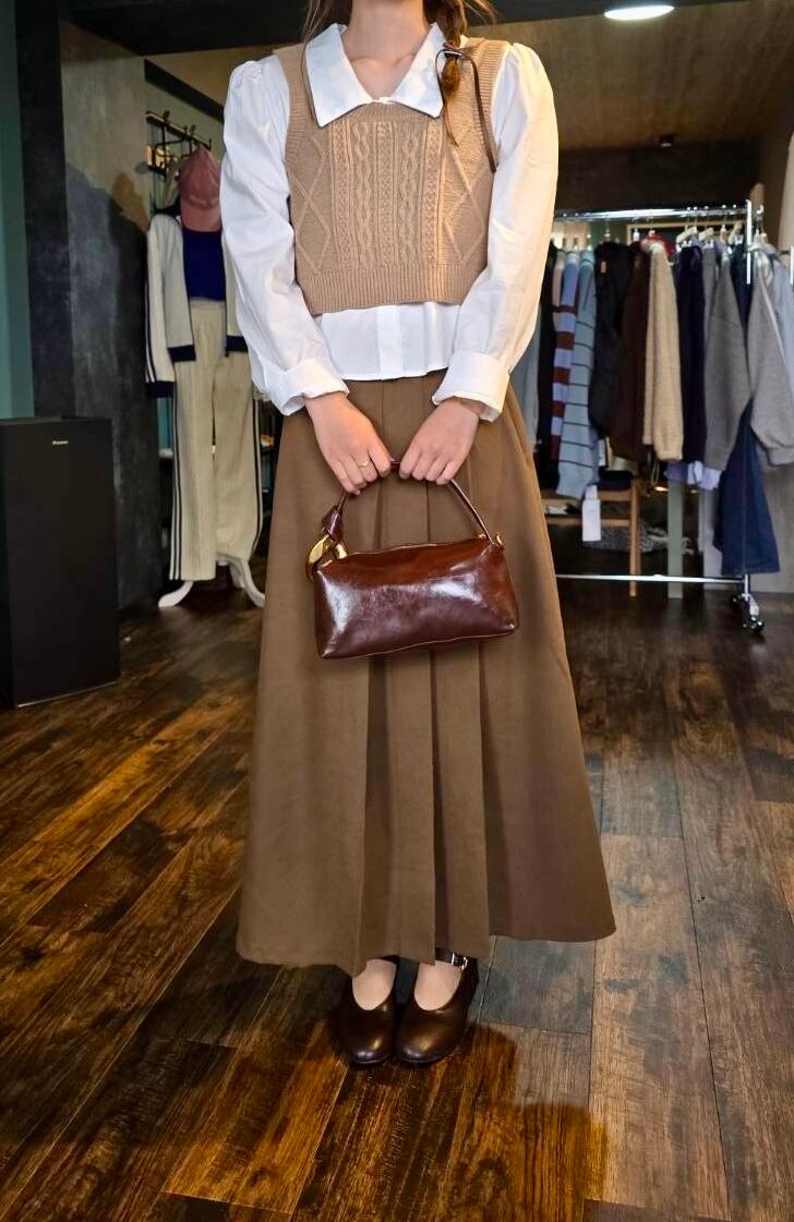 Vネックが首元をスッキリ見せてくれ、短め丈でシャツだけでもレイヤードでも色んなスタイリングが楽しめます。春まで使える年中アイテムです。
