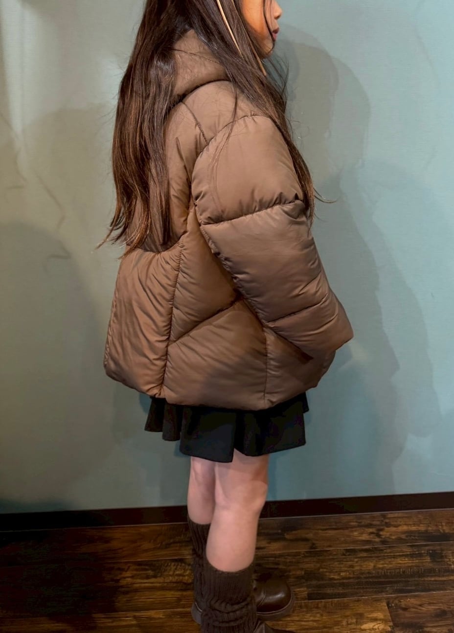 くすみブラウンが可愛い、女の子向け中綿ダウンコート。