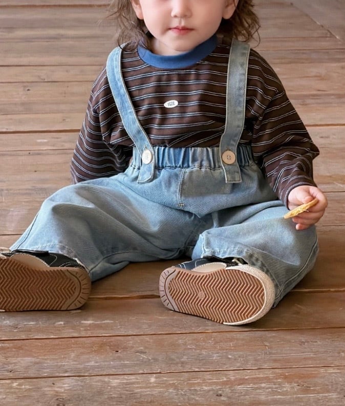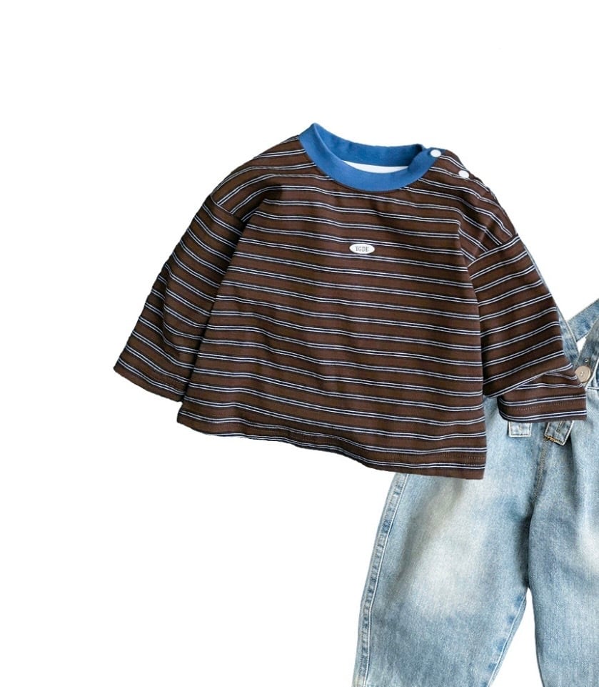 【韓国子ども服】80-100cm カラー配色サンドボーダートップス