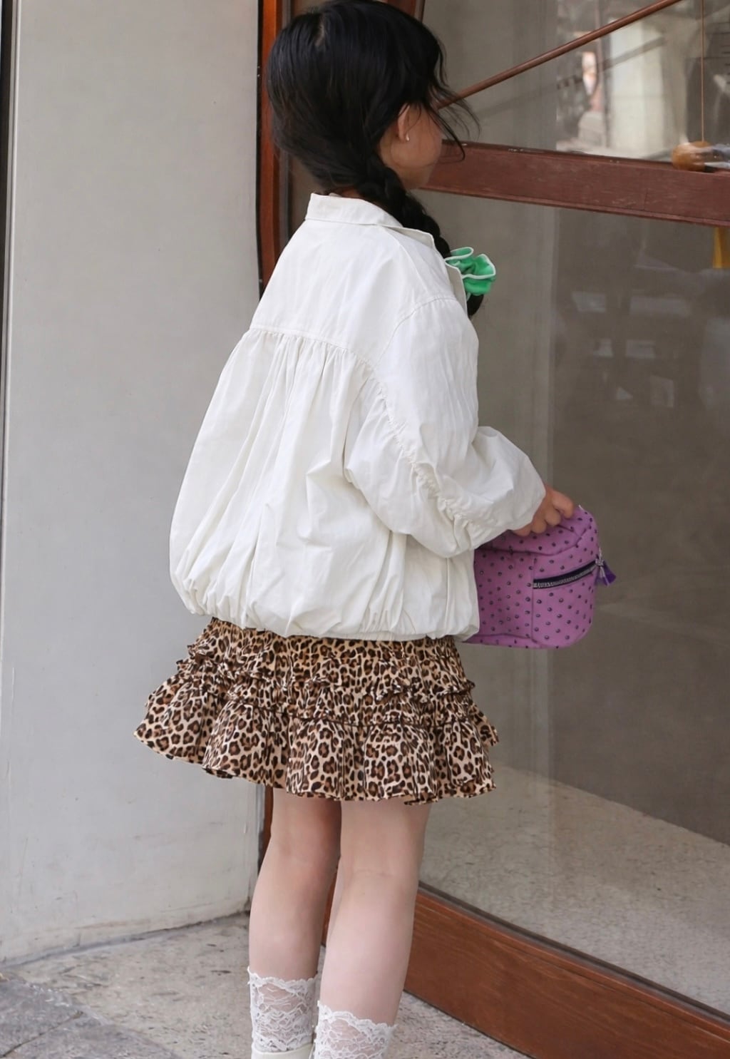 【韓国キッズ】春服 レオパードフリルティアードスカート