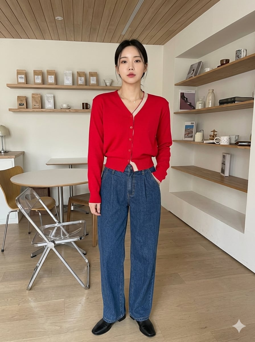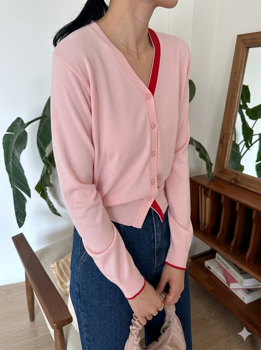 【韓国ファッション】レディース 春新作 2トーンカラー配色カーディガン
