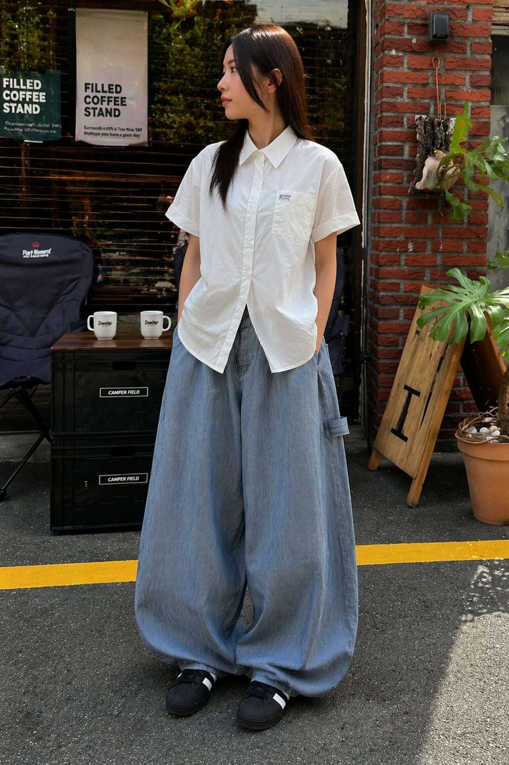 【韓国レディース】即納 26ss 夏 ヒッコリーワイドデニム